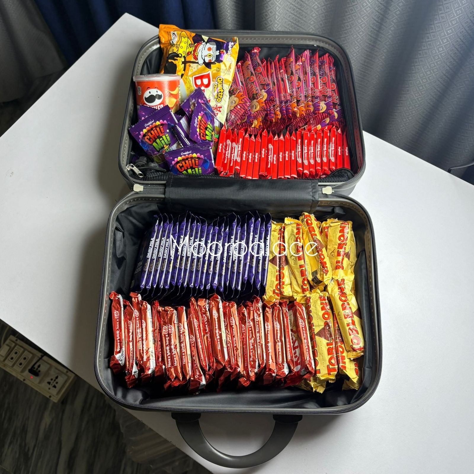 This beautiful hamper is a perfect gift for someone’s 21st Birthday. It has 21 dairy milk, 21 kitkat small, 21 kitkat big, 21 chilli milli, 21 toblerone, 1 buldak, 1 pringle and 1 teddy.