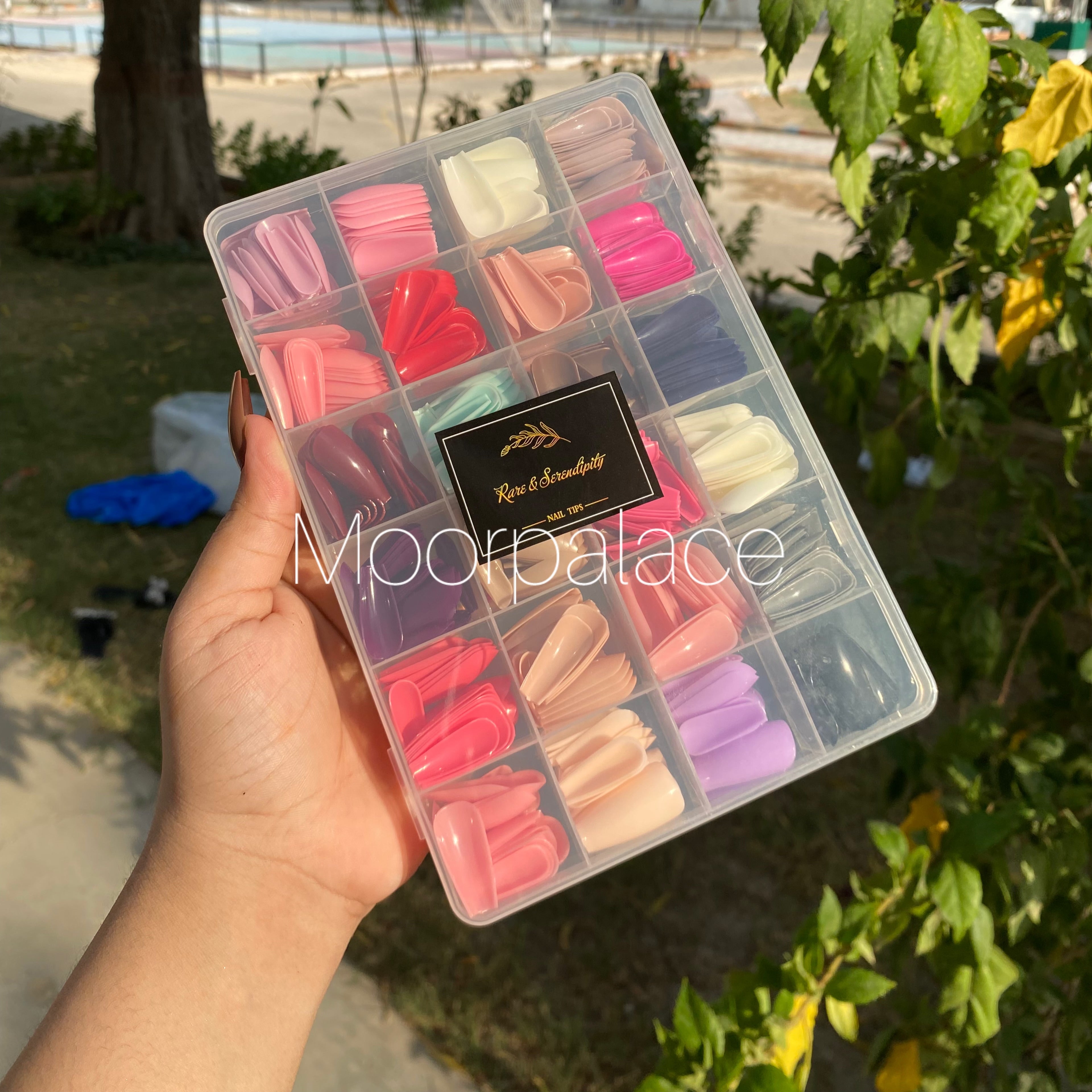 The 576 Artificial Nail Box features 576 nail tips in various shapes, colors and sizes, made from high-quality materials, with easy application. Box has glue and stickers.