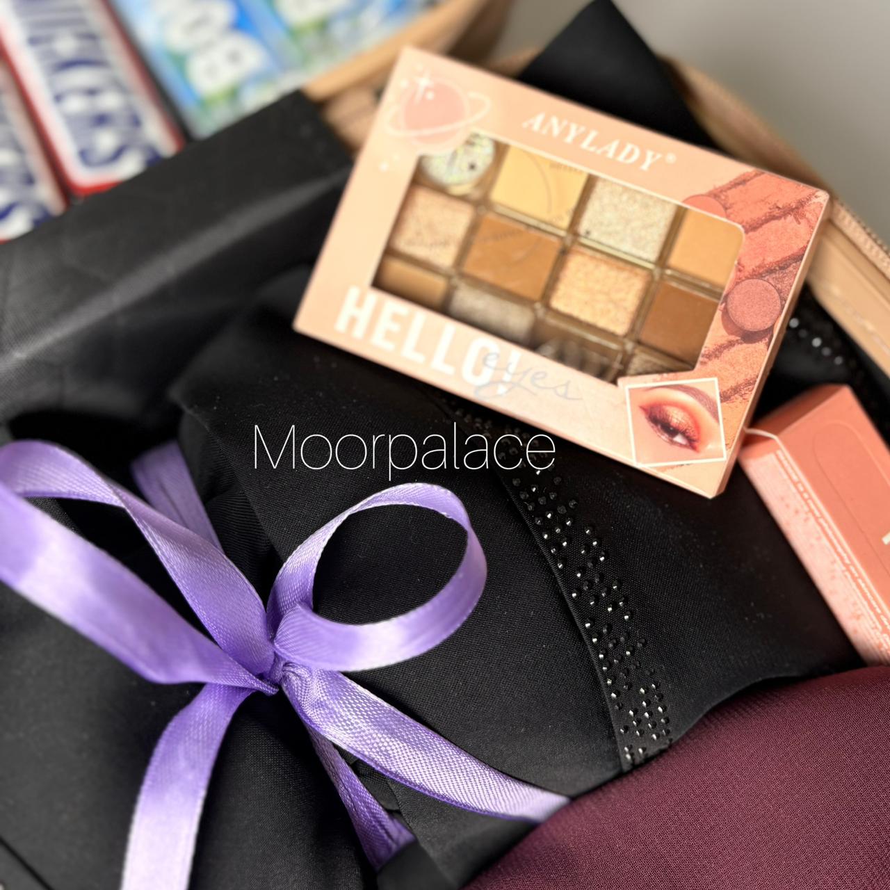 This exclusive bundle includes a versatile abaya scarf, indulgent chocolates, and a luxurious hair mist pack. And for your beauty needs, we have carefully curated a selection of makeup products. All packed with love in a convenient suitcase. Perfect for any journey!