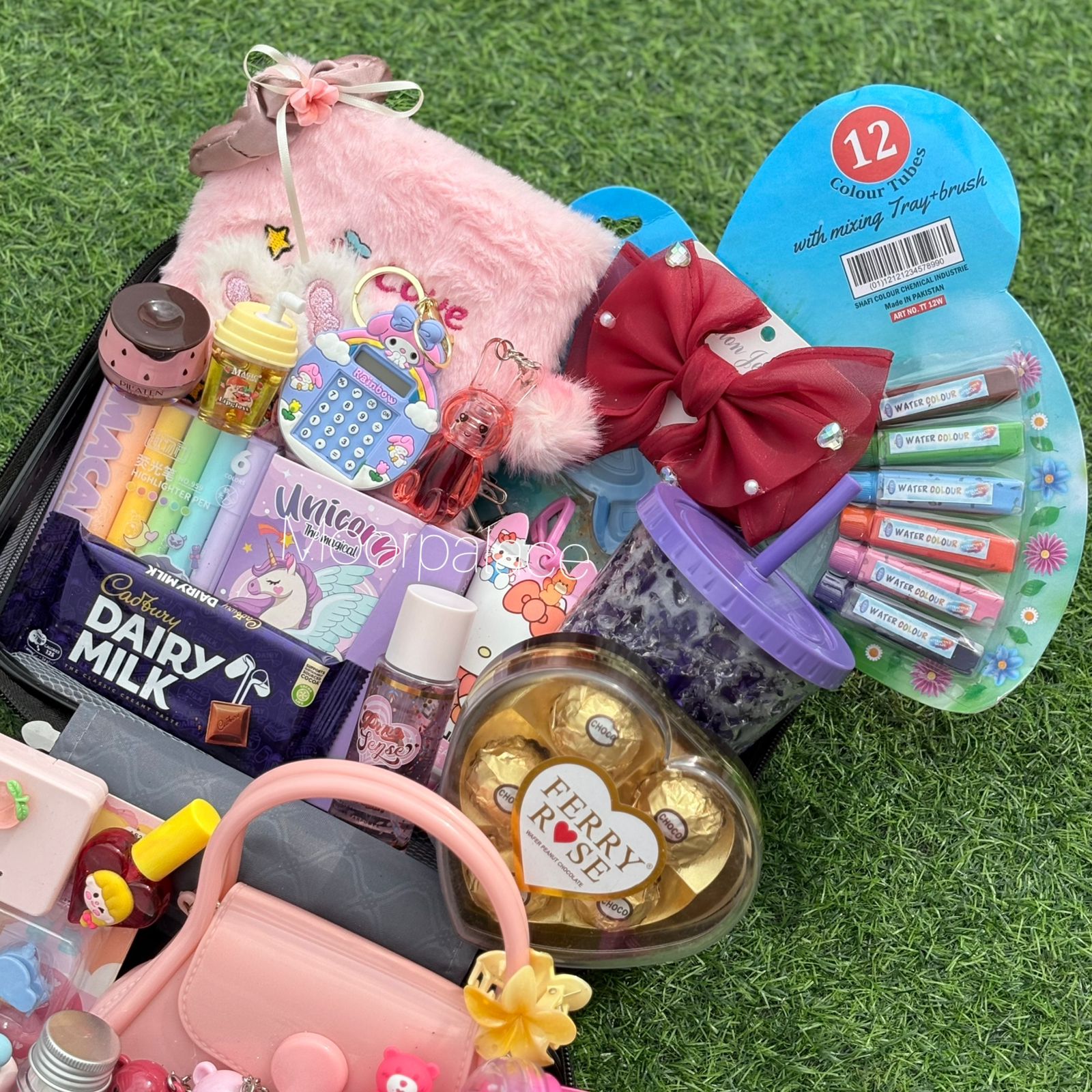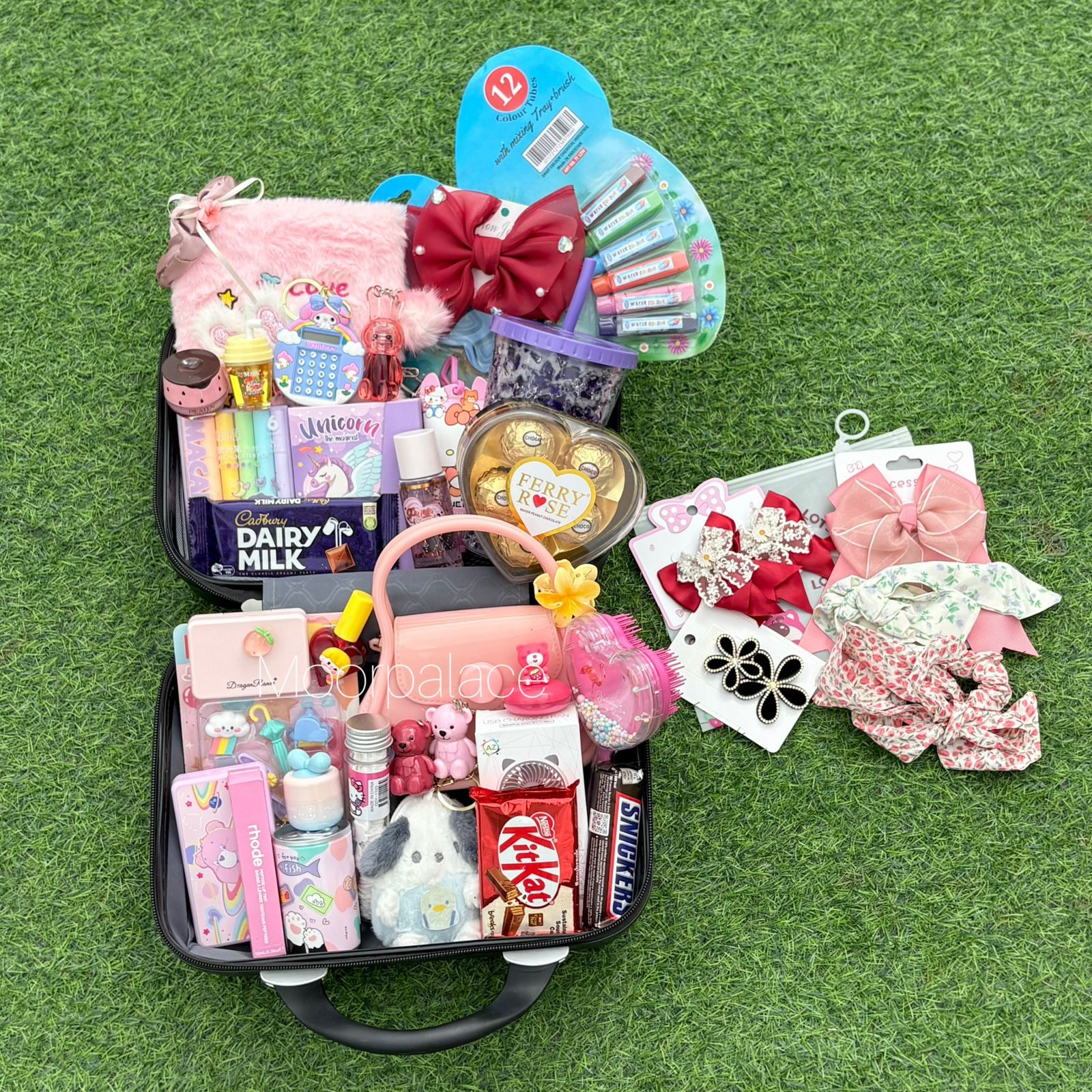 "Introducing the Baby Doll Suitcase Deal, the perfect gift for your little ones! This suitcase is filled with a variety of makeup gloss, balm, and eye-shadow, along with hair accessories. Give your child a fun and creative way to play while also encouraging imaginative play and self-expression."