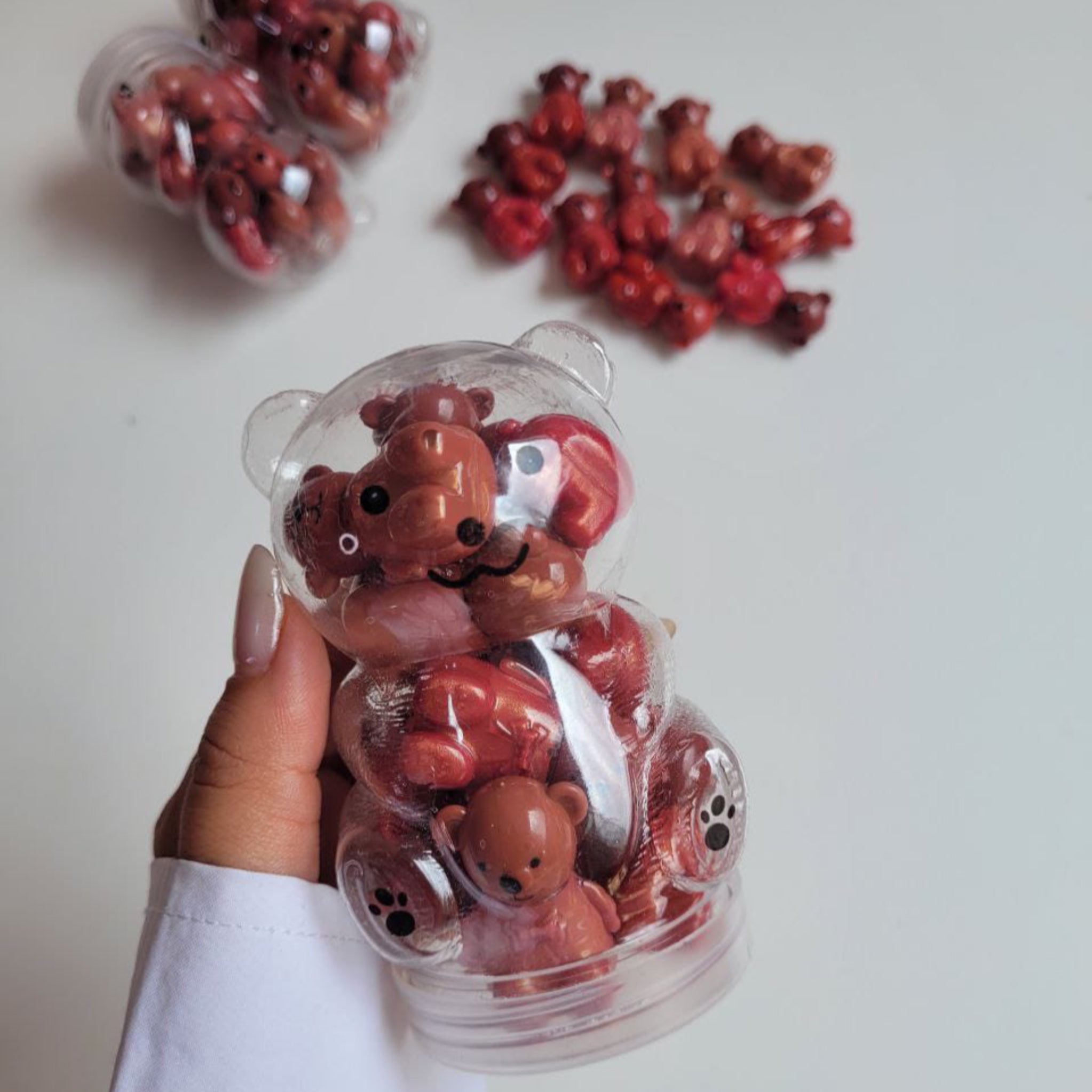 The Bear Glossy Glosses 12pcs set offers a variety of glossy gloss shades in a sleek and adorable bear-shaped box. Perfect for makeup lovers looking for a convenient and stylish way to store their lip glosses. Get 12% more shine with these irresistible Bear Glossy Glosses.