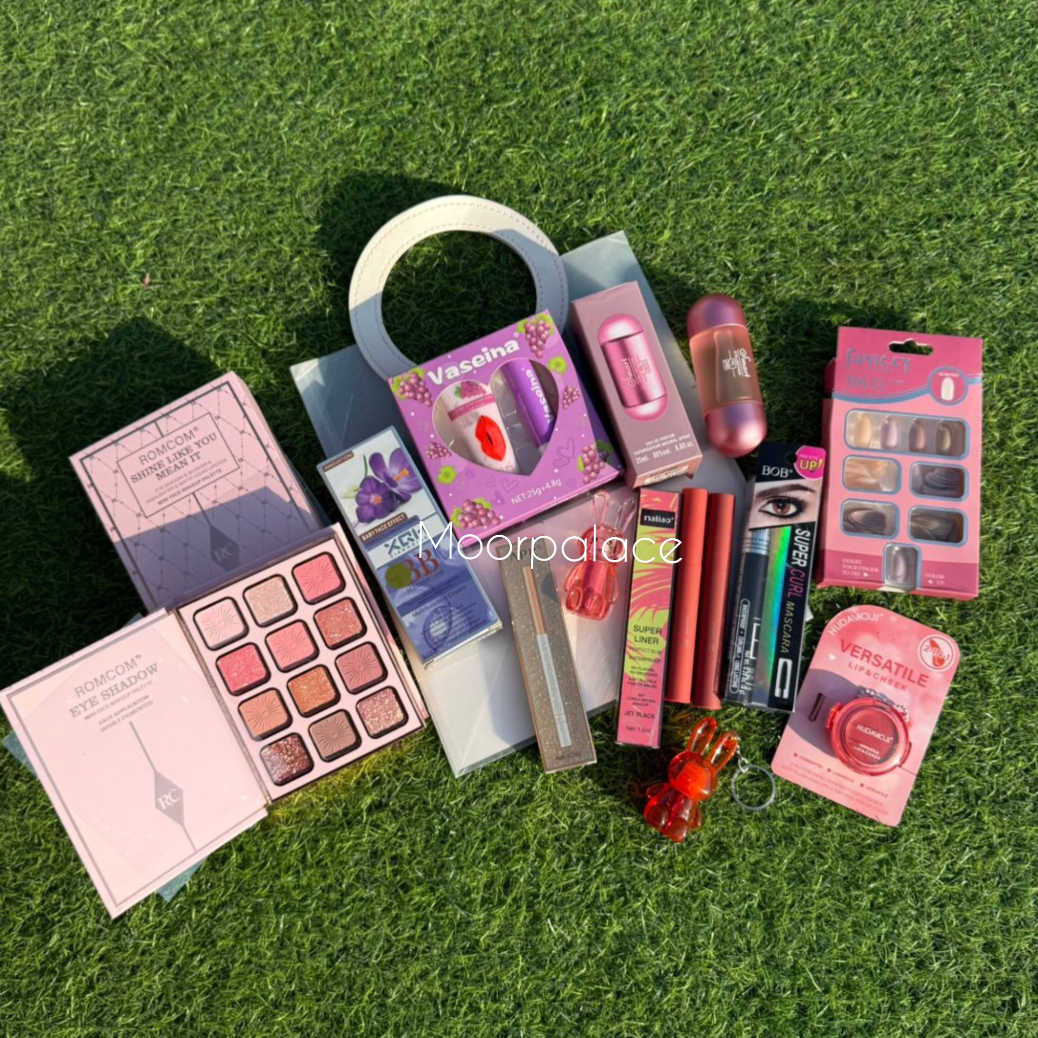 This deal includes all in one makeup palette, bb cream, perfume, liner, mascara, lip care set, lip gloss, matte glosses, tint, nail box, white pencil, lip and cheek blush along with the transparent gift bag.