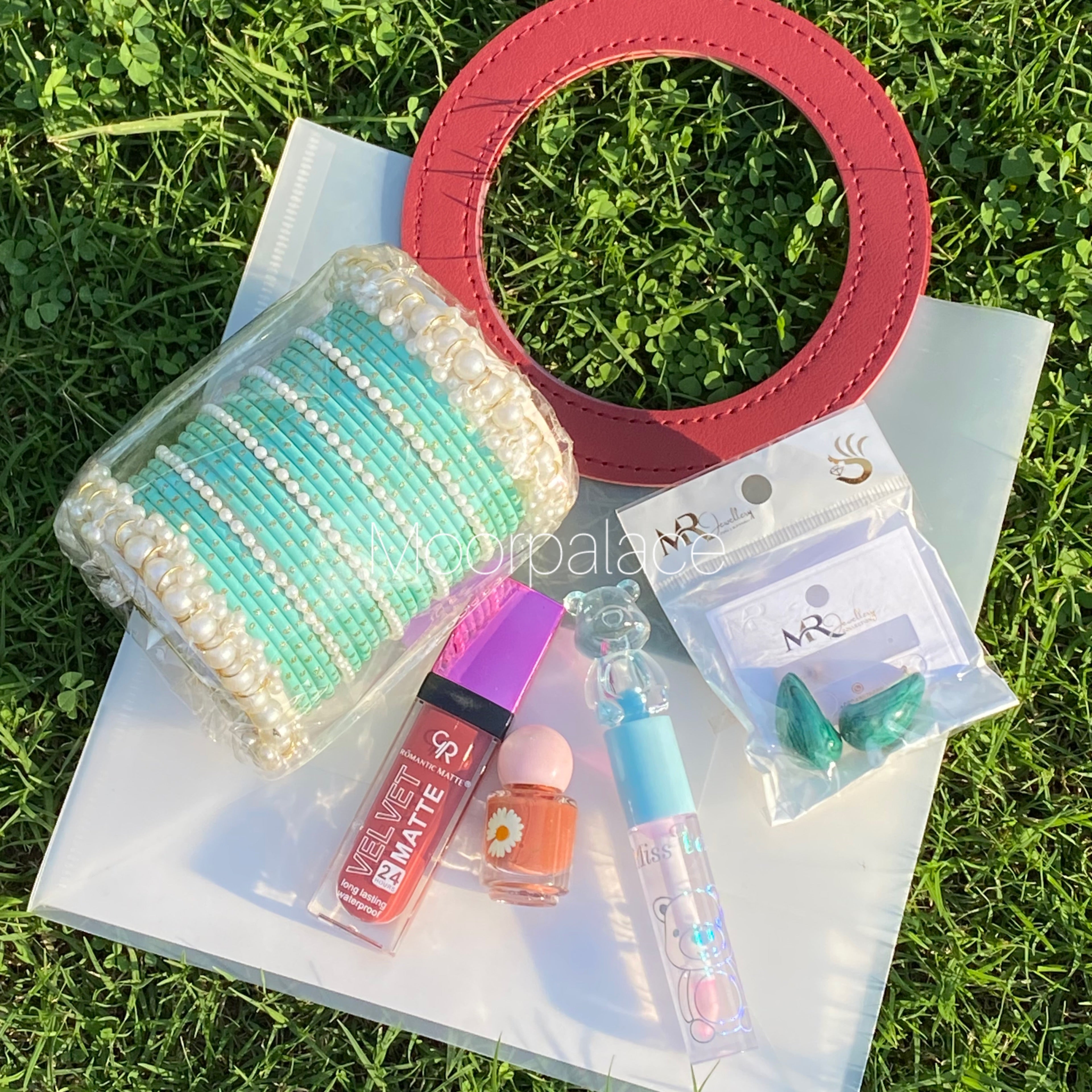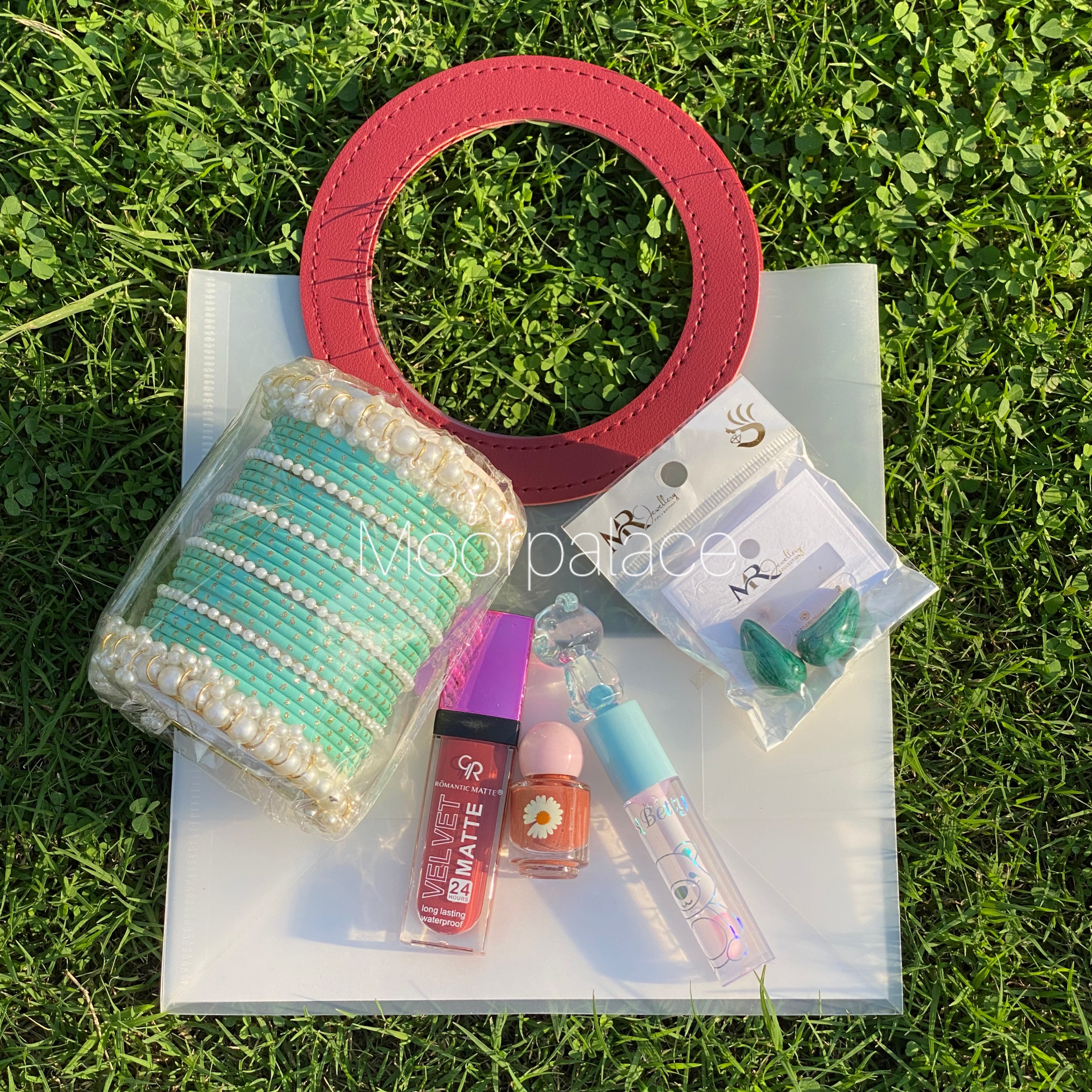 This amazing deal is all set to make your desi girl happy, it has set of trendy gift bag, beautiful bangles, glossy gloss, matte gloss, ear studs and nail paint.