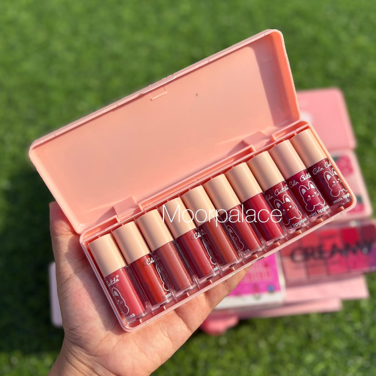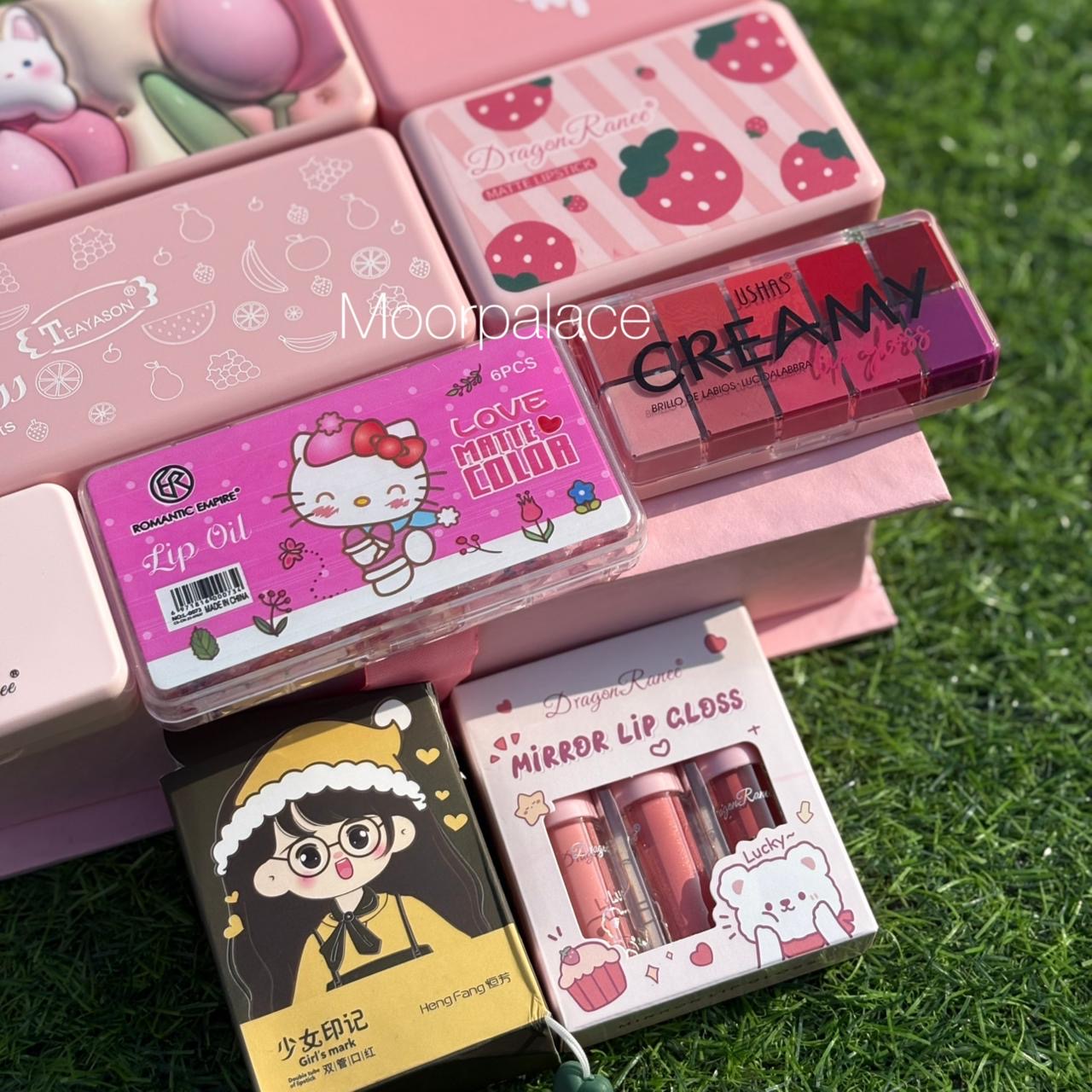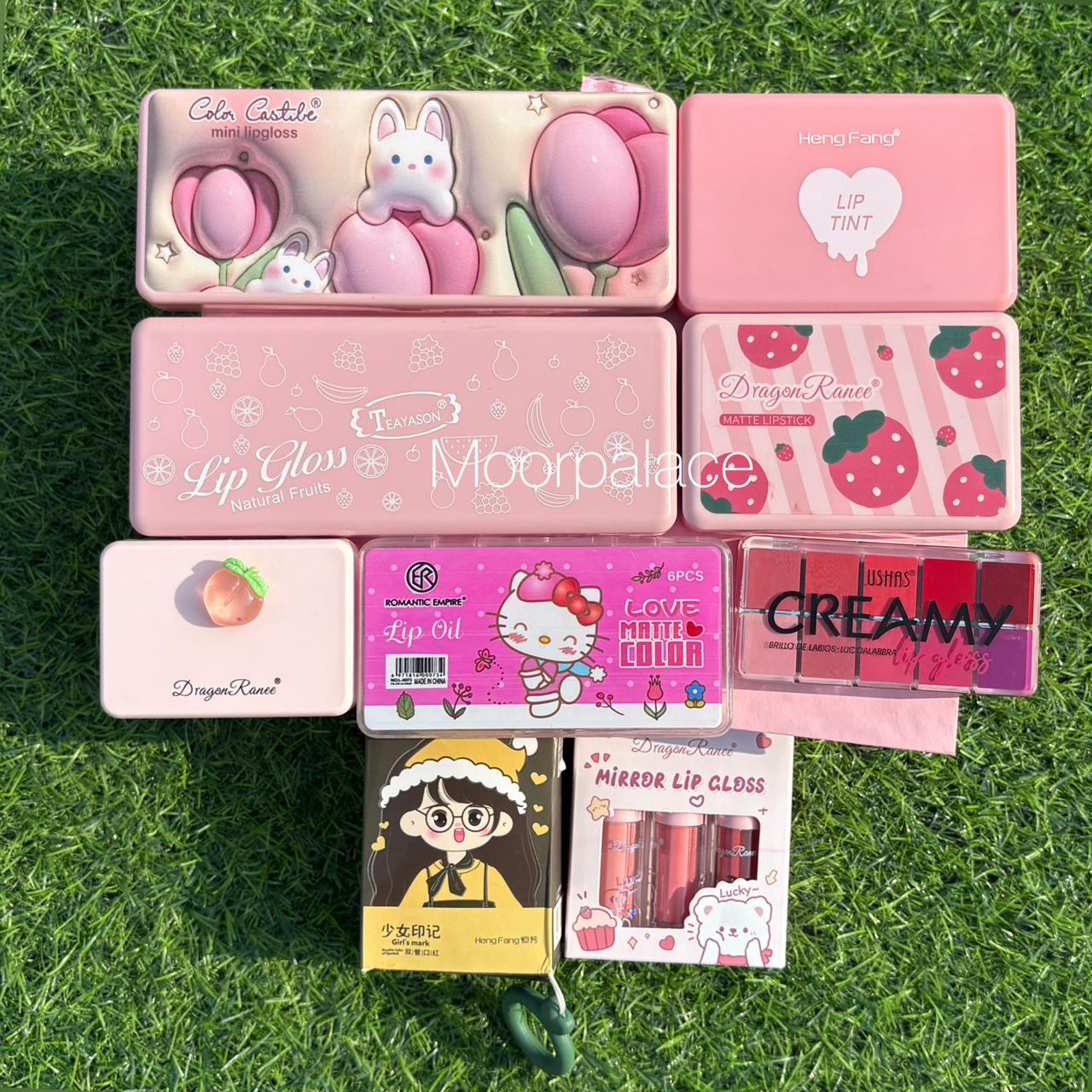 This deal includes a box of 12 matte glosses, 12 glossy glosses, box of 6 tints, box of 6 lipsticks, air-pod lipsticks, glossy glosses box, box of 6 tinted lip oils, creamy lipstick palette.
