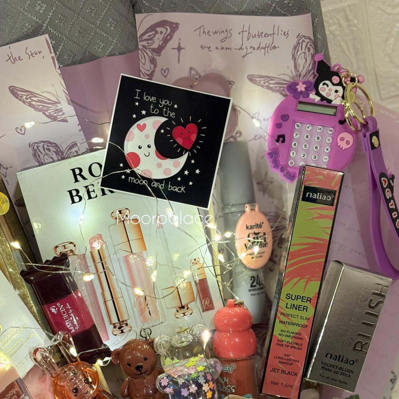 The Lilac Beauty Bouquet is a must-have for any beauty lover. This stunning bouquet includes a variety of lip products, mascara, eyeliner, gloss, balm, oil, and blush, as well as hair accessories. Perfectly packaged in a beautiful bouquet, it's the ultimate gift for yourself or a loved one.