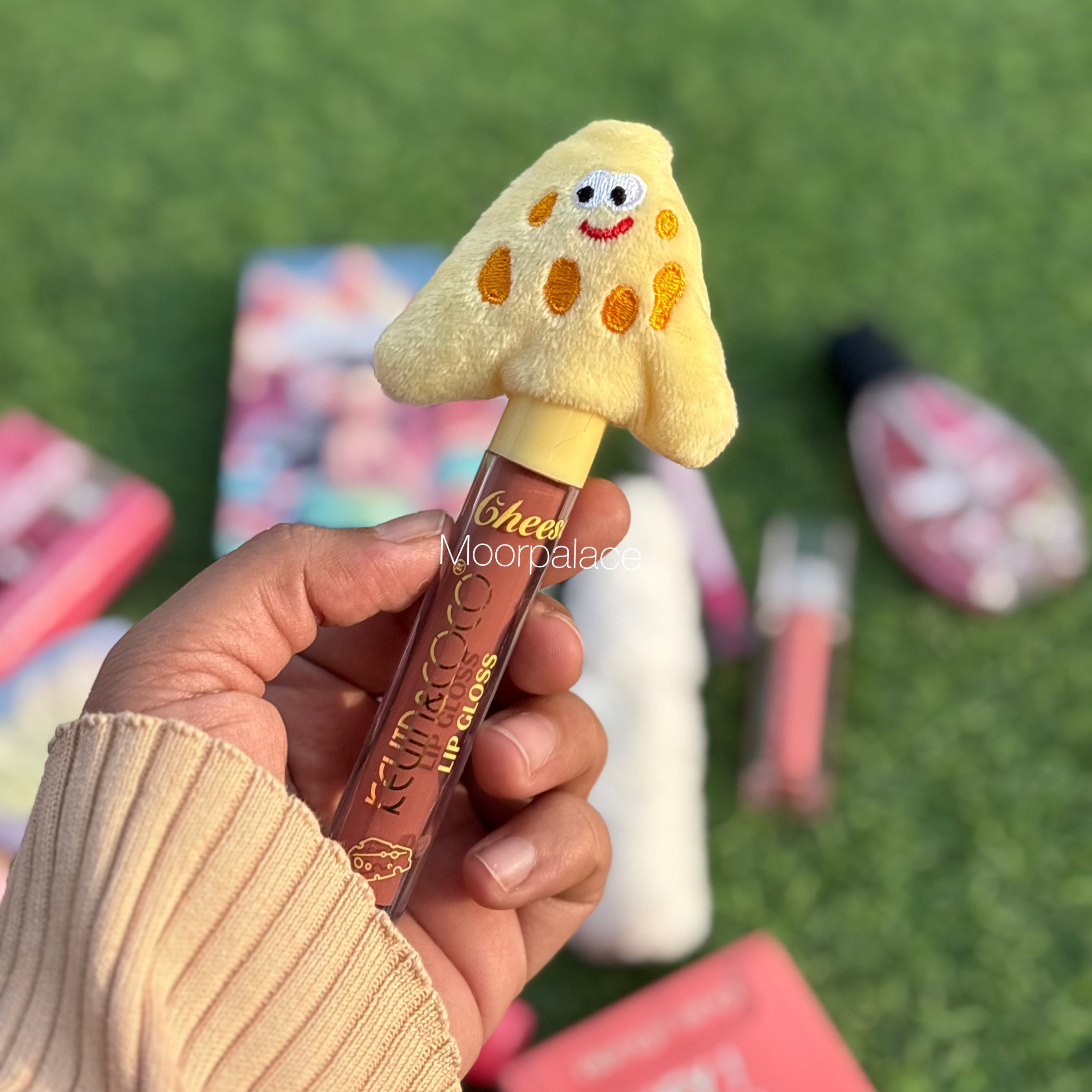 This cute deal includes plushie head matte gloss, all in one palette, mirror, balm, lip oil set, pack of 4 lipsticks, lblush and highlighter duo, tinted lip gloss, lip and cheek blush along with the box.