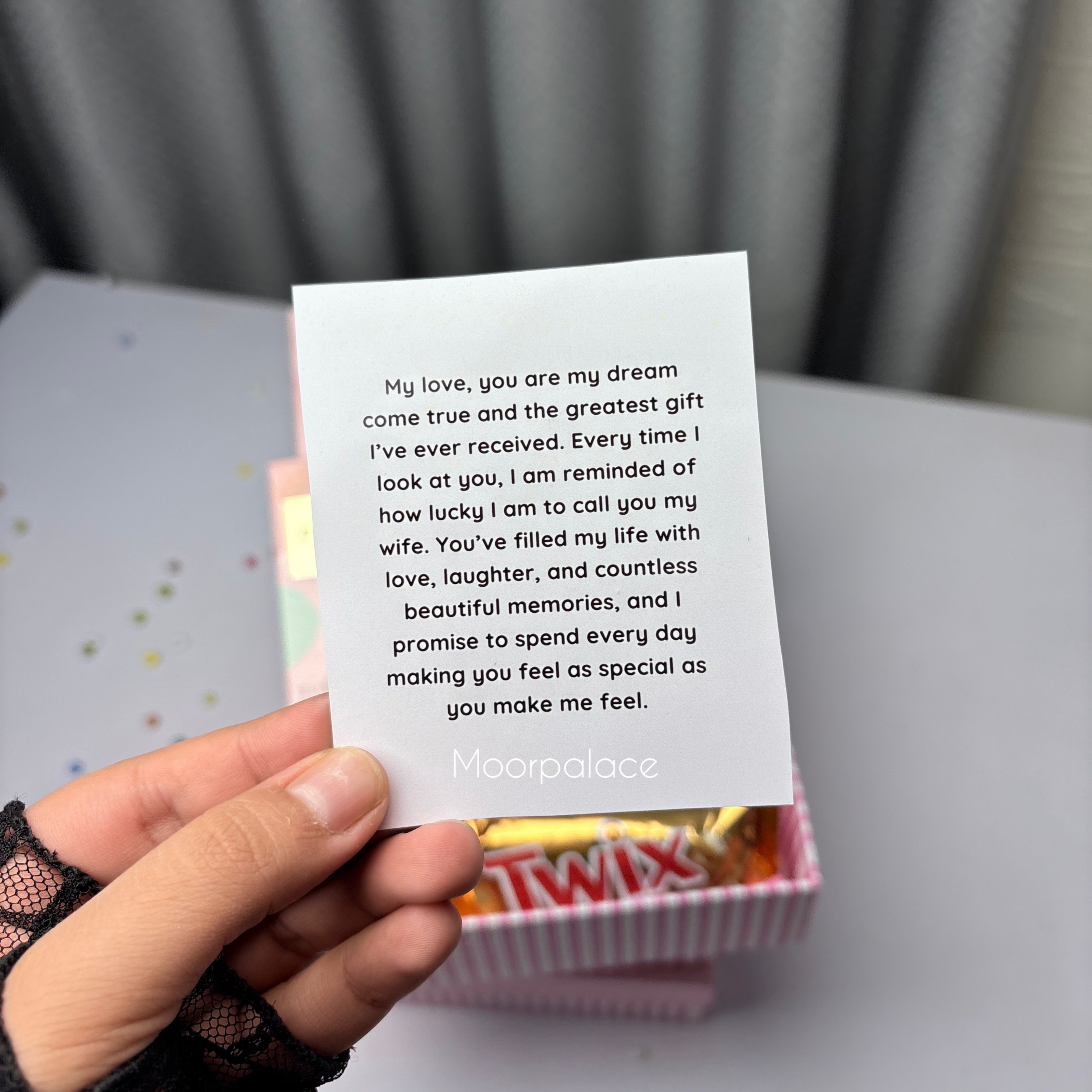 This cutest box has lip care set with balm and gloss, body cream, cleanser, all in one palette and 2 chocolates wrapped in a beautiful box.
