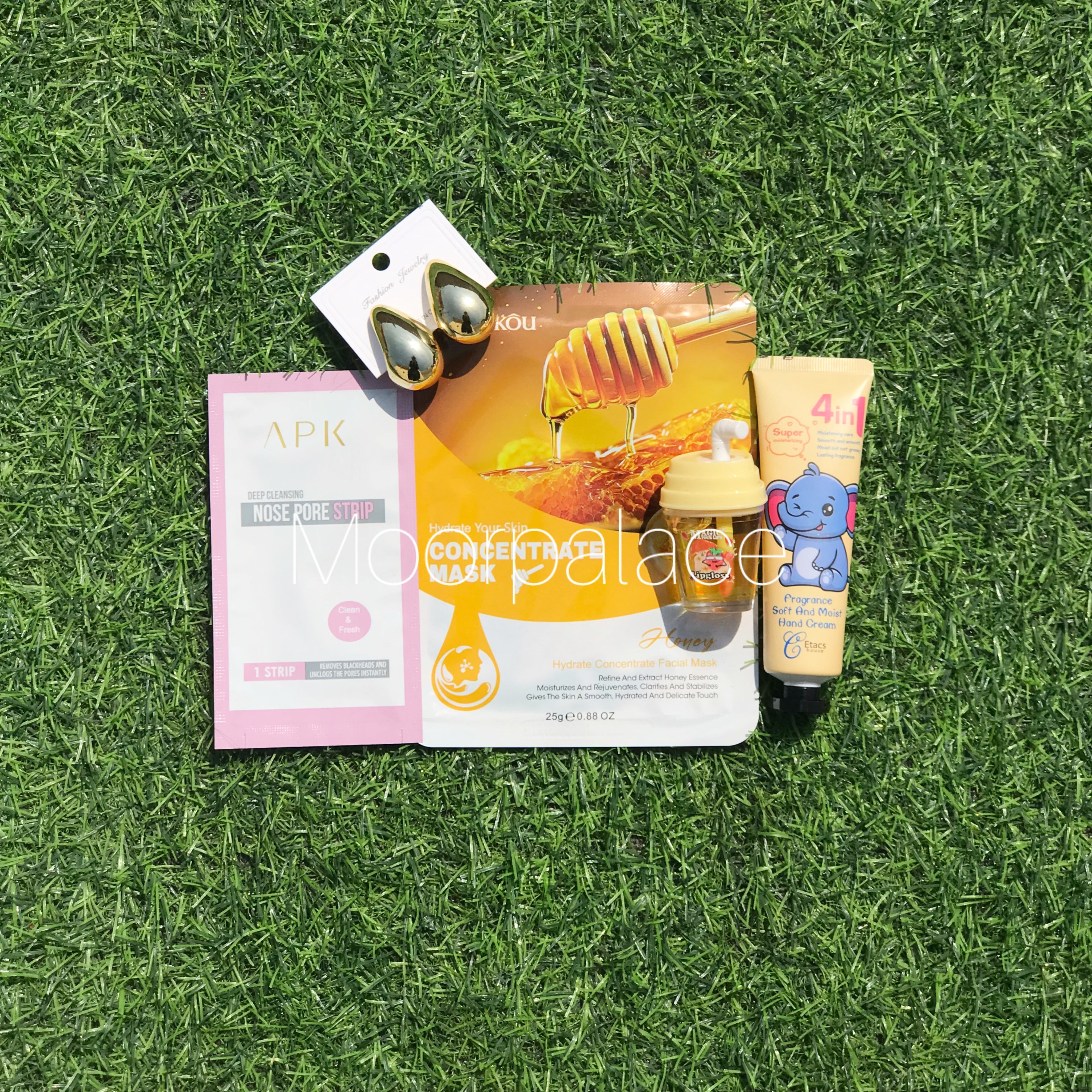 Introducing our rainbow deal which covers almost all of favourite essentials of women.This deals has sheet mask, nose strip, tinted gloss, Hand-cream and pair of earring.It will come in a holographic gift pouch.