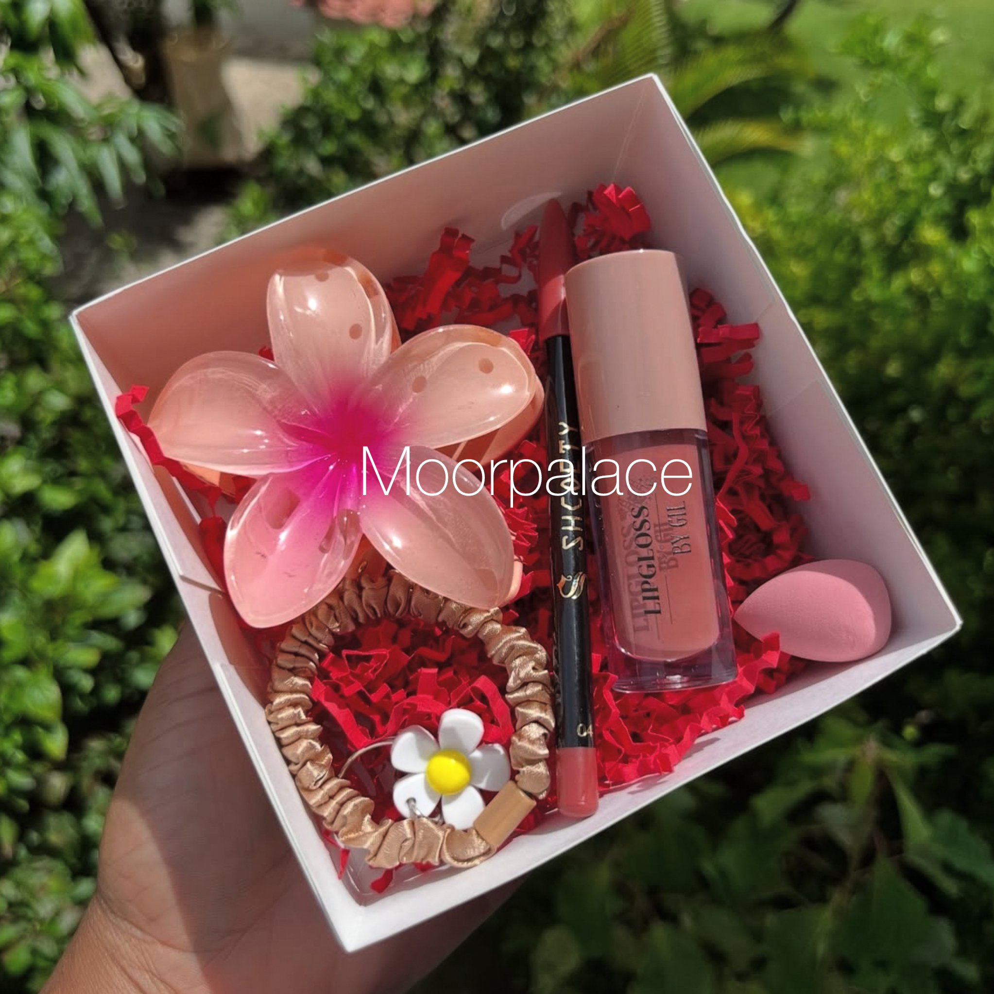This deal has all cutest essential.Perfect for gifting.It has one beautiful claw catcher, glossy gloss, lip liner, prettiest hair band and mini blender.